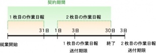 * (作業日報の作成)所定の作業日報を、翌月の3日までに、センターの担当者へ 郵送またはFAXでお送りください。就業期間が複数月にまたがる場合は次の 要領で作成してください。