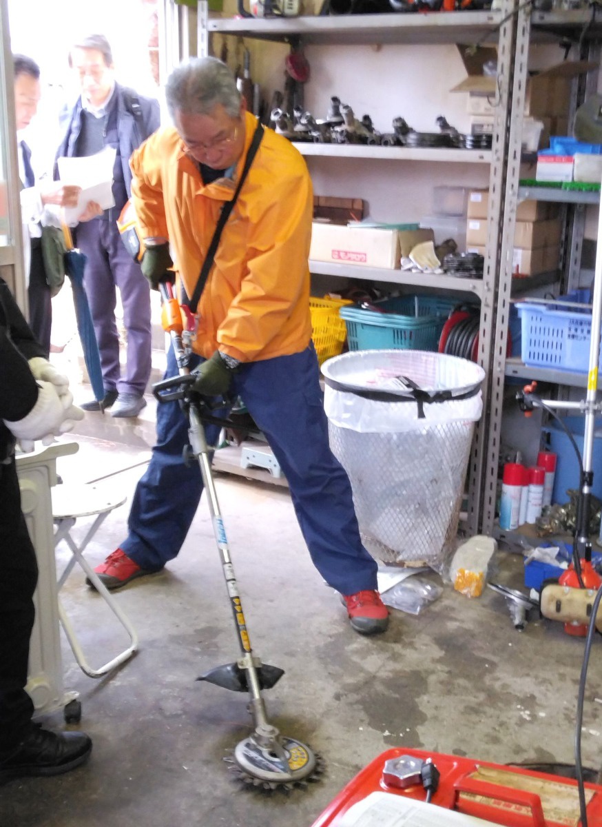 毎年、刈払機(カルマー)講習会を実施しておりますが、今年度は習熟度別に2回(午前、午後)に分けて講習をおこないました。