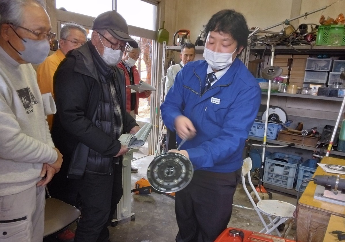 そこで、適切に道具を使用し石飛び事故をなくすために、2月25日(水)に刈払機(カルマー)講習会を実施しました。