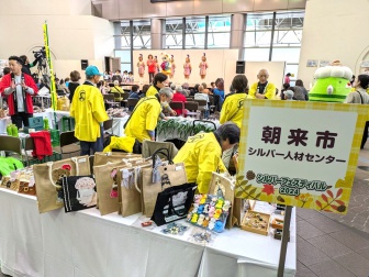 兵庫県内のセンターが集まり、野菜やお米などそれぞれの特産品や手作り小物の販売、兵庫県シルバー人材センターのイメージキャラクターである「徳永ゆうき」さんによる歌謡ショーなど、会場はお子様からシルバー世代まで幅広い年齢層の市民で賑わいました。