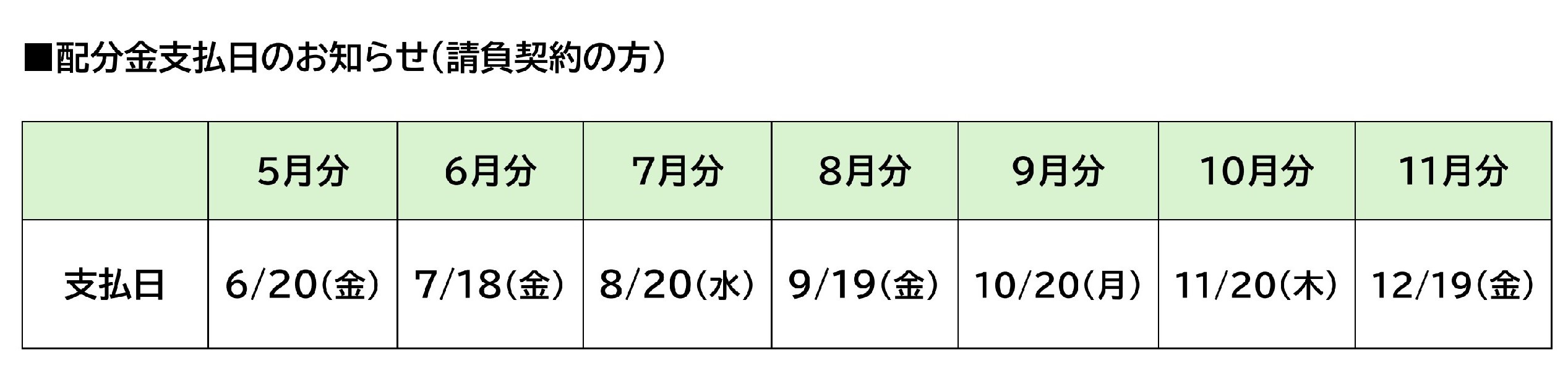 ・4月分(5/20支払い)または5月分(6/20支払い)の配分金から天引きをします。