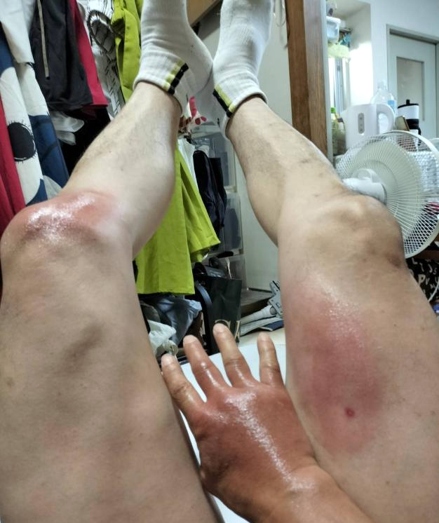③剪定・除草作業中、丸く刈った枝の奥にあったキイロスズメバチの巣に気づかず蜂に急襲される。急ぎ退避したが、数か所蜂に刺される。 虫さされ