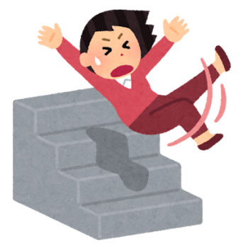 ⇒ 時間に余裕をもって行動しましょう! 階段を降りる際は、つま先から着地することを意識し、体の安定を保ちましょう!