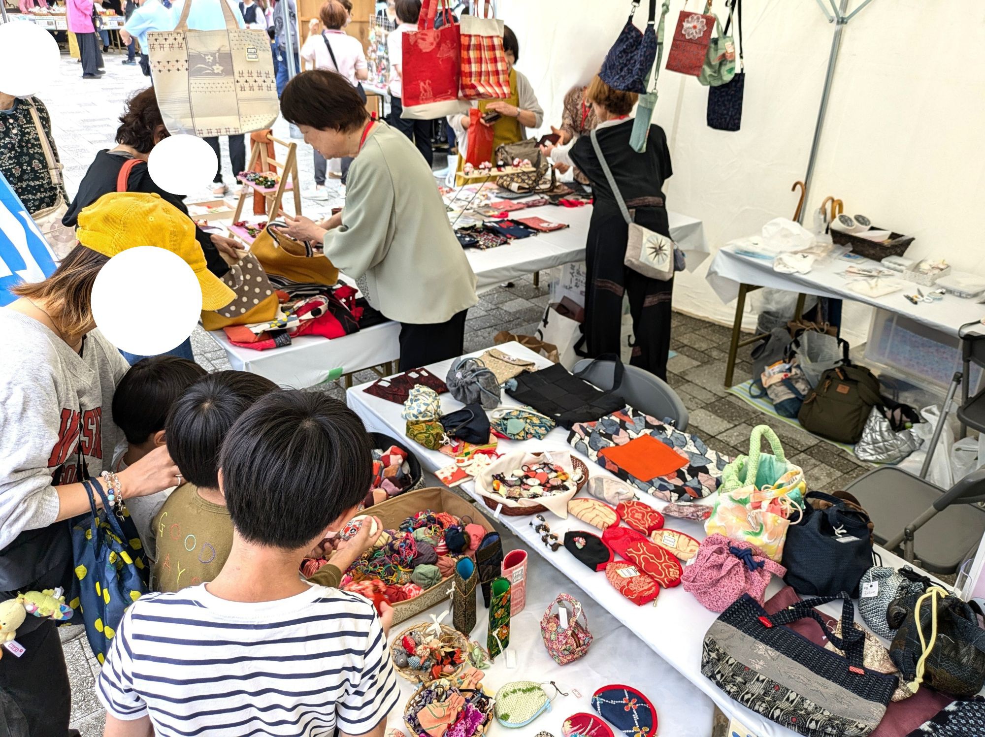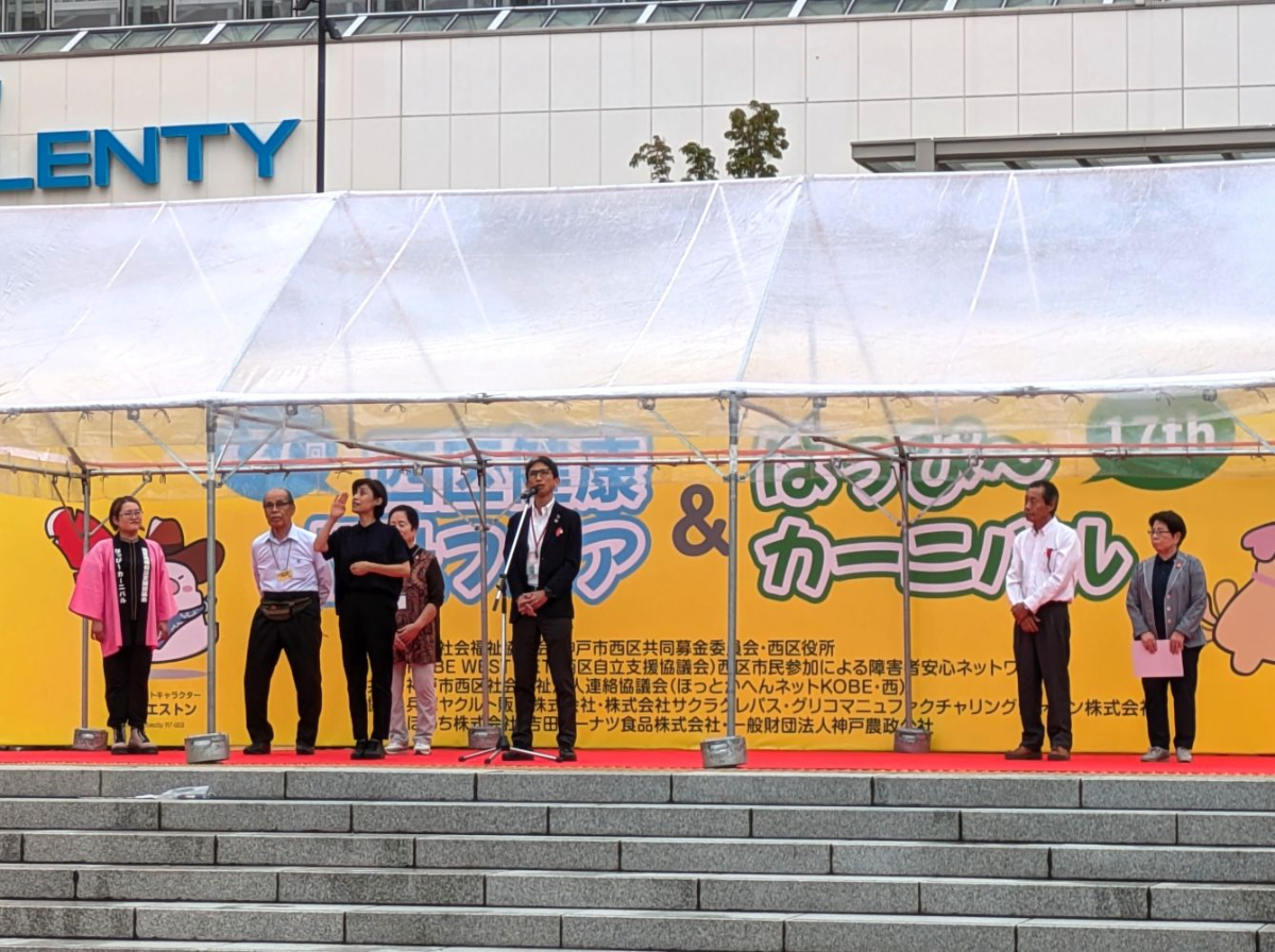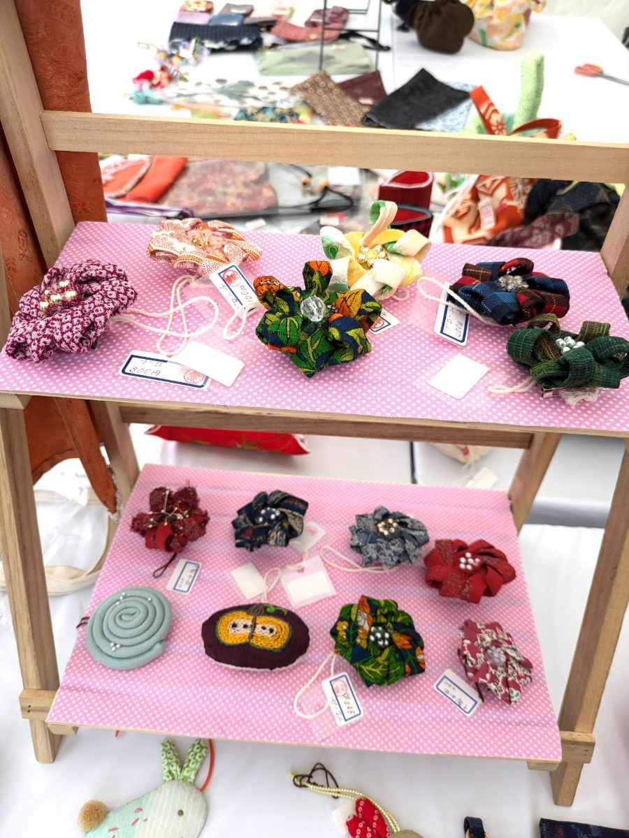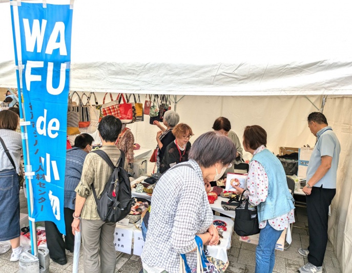 令和7年10月4日、西神中央プレンティ広場(神戸市西区)で開催された「第27回健康・福祉フェア&はっぴ~カーニバル17th」に会員の自主活動グループ「Wafu de 小物 すみれ会」も出展し、手作り作品の販売を行いました。