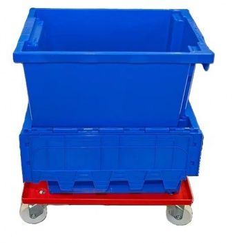 ⇒ ケース(商品)を運ぶ際はドーリーの前に立ち、引きながら歩きましょう。ケースがきちんと連結(はまっているか)されているかを確認しましょう。