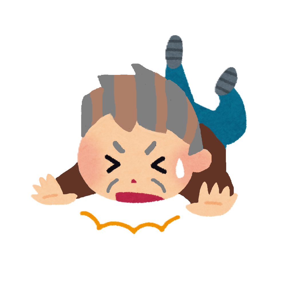 ②パンフレット配布中に戸建てポストに投函後、門扉から続く大理石のアプローチと公道との接点部分の段差(3~4㎝)に足を取られ前向きに転倒。結果、両手・膝の裂傷、及び顔面打撲による右目上部分の裂傷で4針縫合。頸椎4番5番損傷。