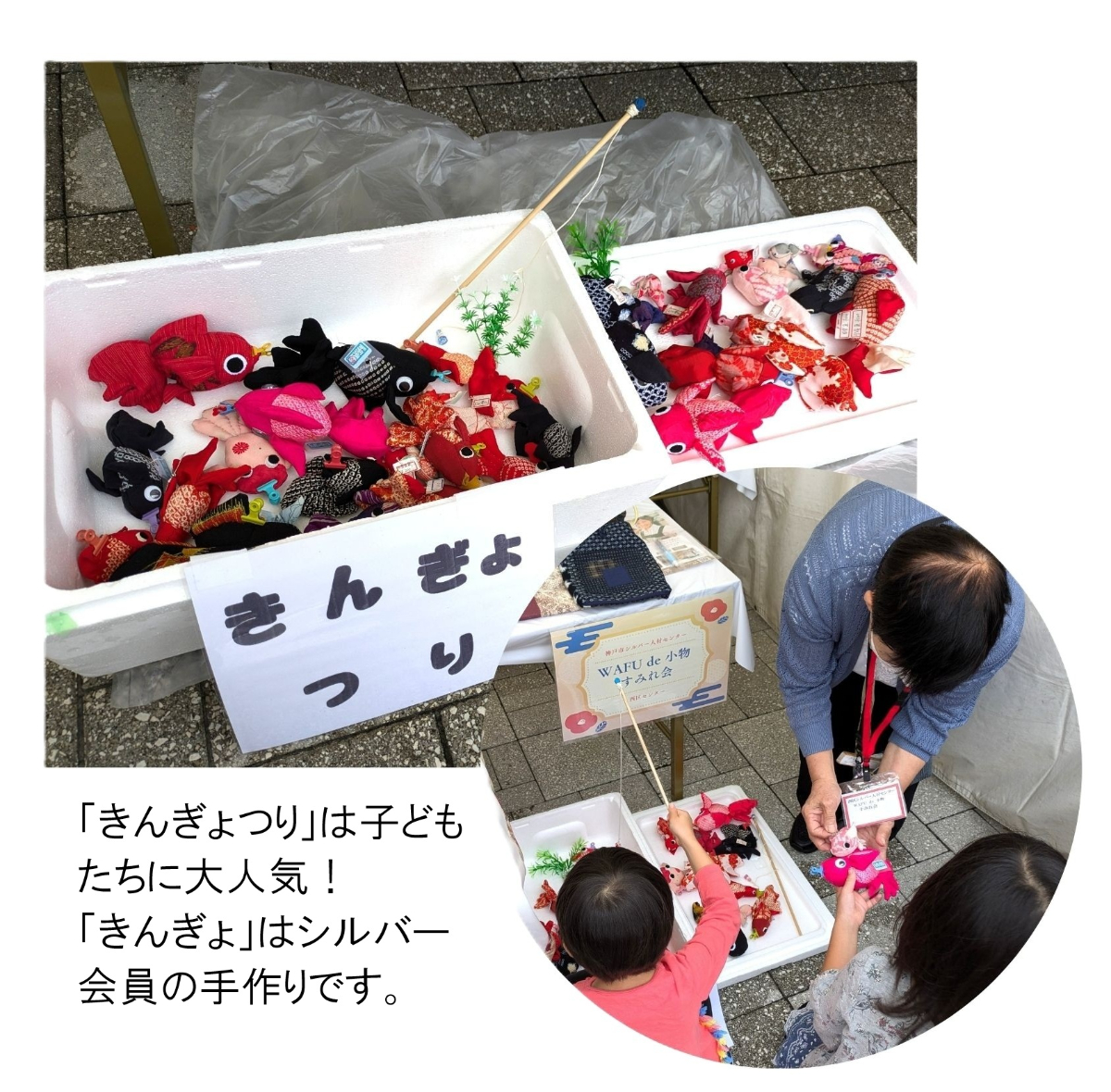このイベントは、模擬店やバザーで買い物を楽しみながら健康や福祉について学ぶことができ、毎年この時期に開催されます。当日はあいにくの天気でしたが、多くの来場者がシルバー人材センターのブースを訪れ、心のこもった作品に興味を示してくださいました。
